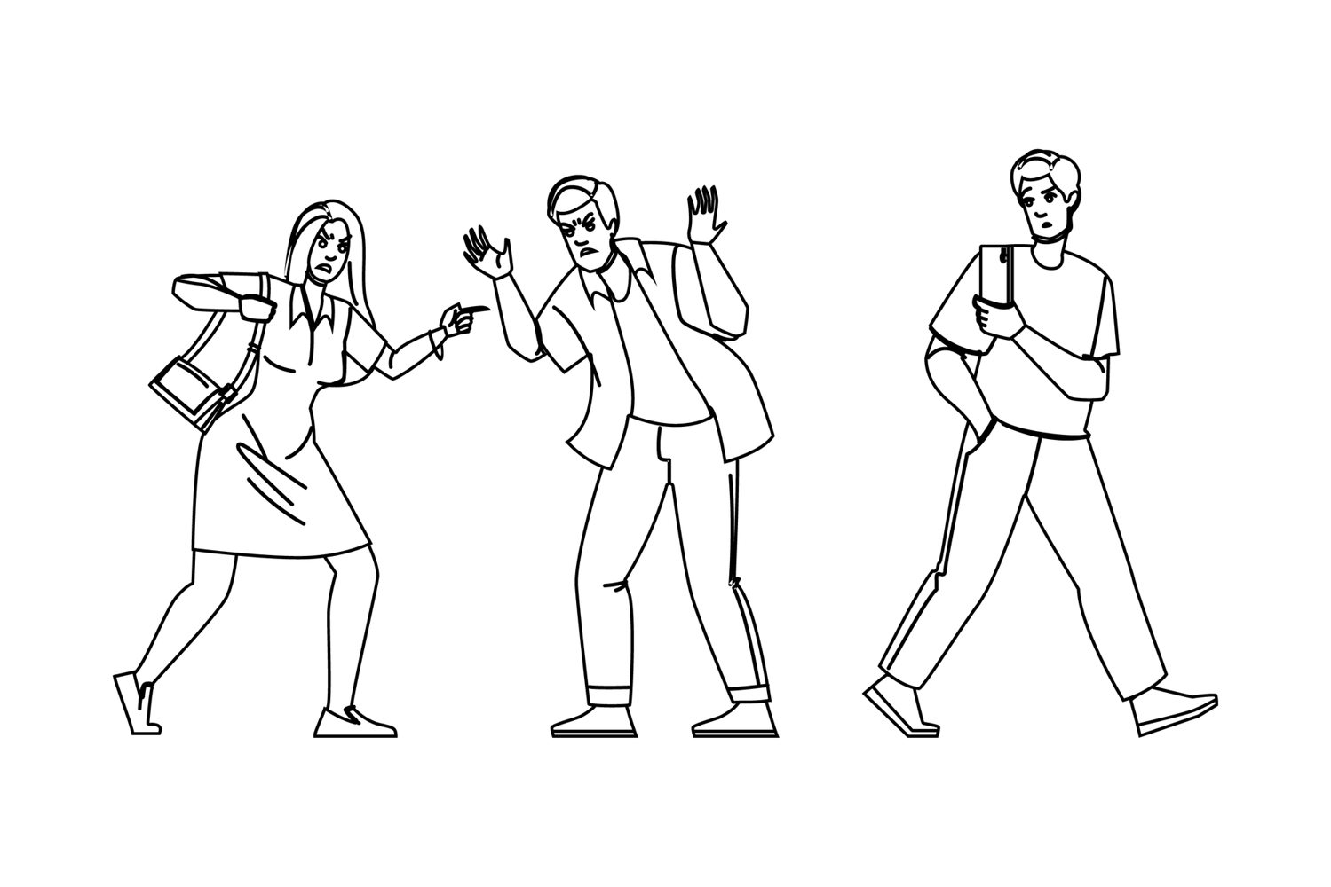 quarrel couple street conflict vector. confrontation disagreement, tension clash, altercation feud quarrel couple street conflict character. people black line pencil drawing illustration