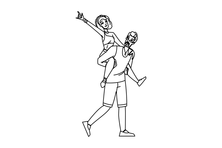festival couple summer concert vector. tickets live, band venue, dates travel festival couple summer concert character. people black line pencil drawing illustration