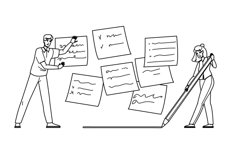 plan deadline notes vector. schedule agenda, event date, meeting diary plan deadline notes character. people black line pencil drawing illustration