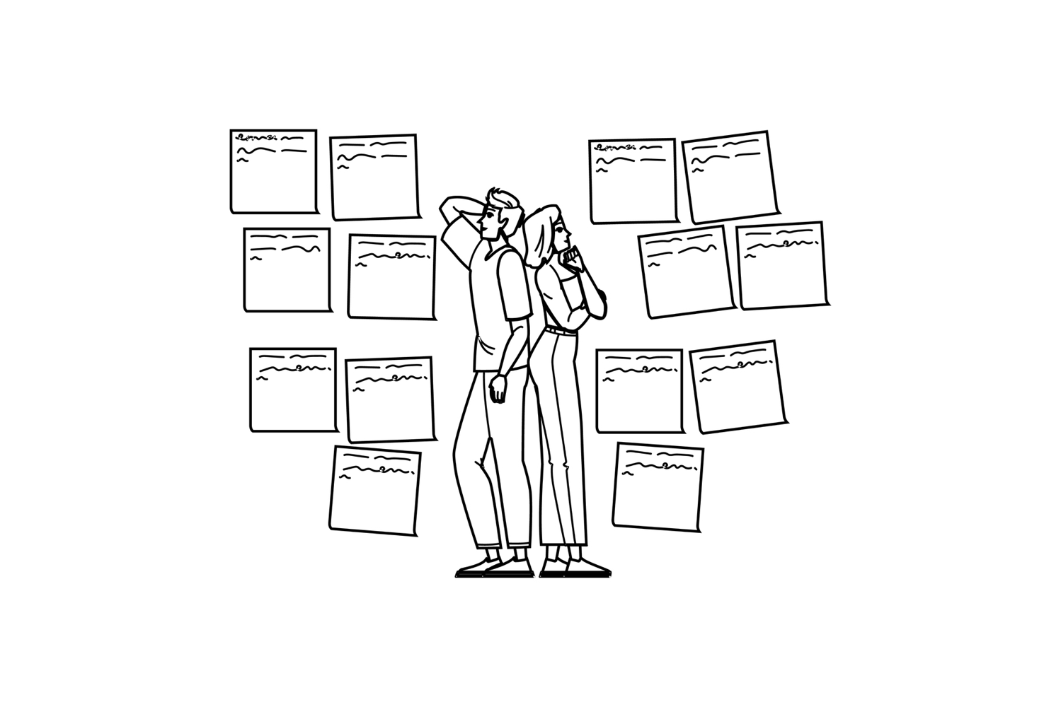 user empathy map website vector. experience research, persona journey, emotions needs user empathy map website character. people black line pencil drawing illustration