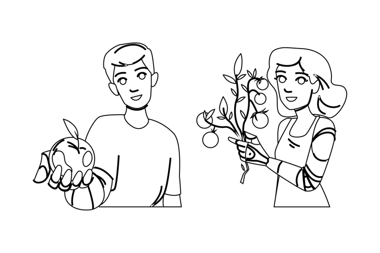 agriculture future food technology vector. digital green, science nature, greenhouse organic agriculture future food technology character. people black line pencil drawing illustration