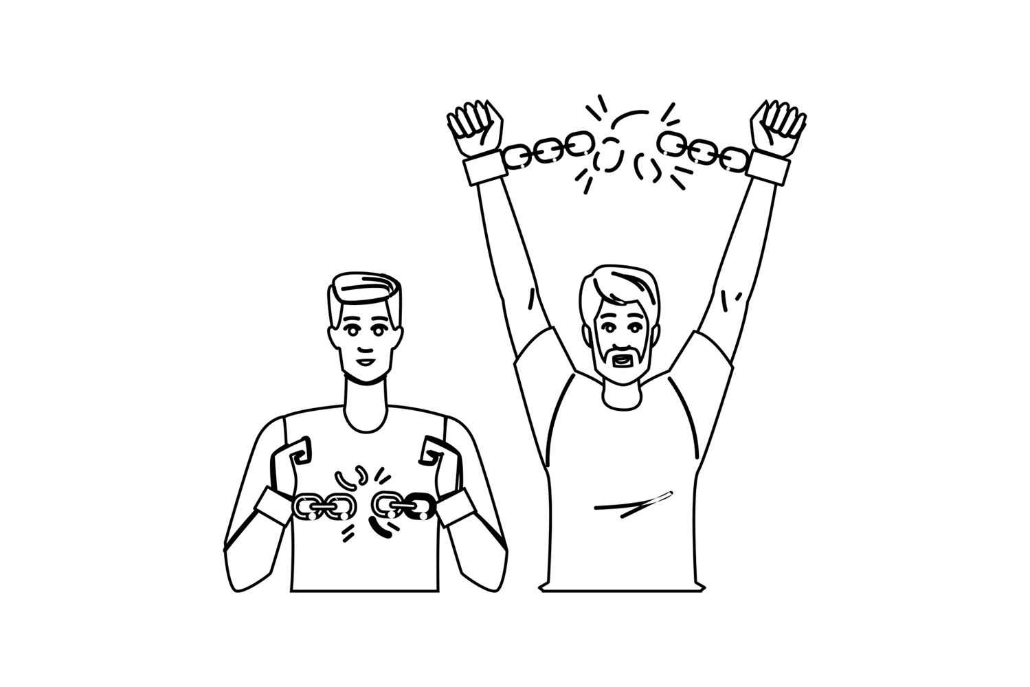 resilience hands breaking chain man vector. empowerment defiance, independence release, victory triumph resilience hands breaking chain man character. people black line pencil drawing illustration
