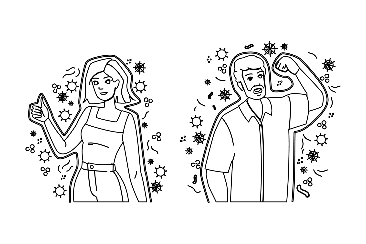 disease healthy immune system vector. strong food, nutrition fit, antioxidant detox disease healthy immune system character. people black line pencil drawing illustration