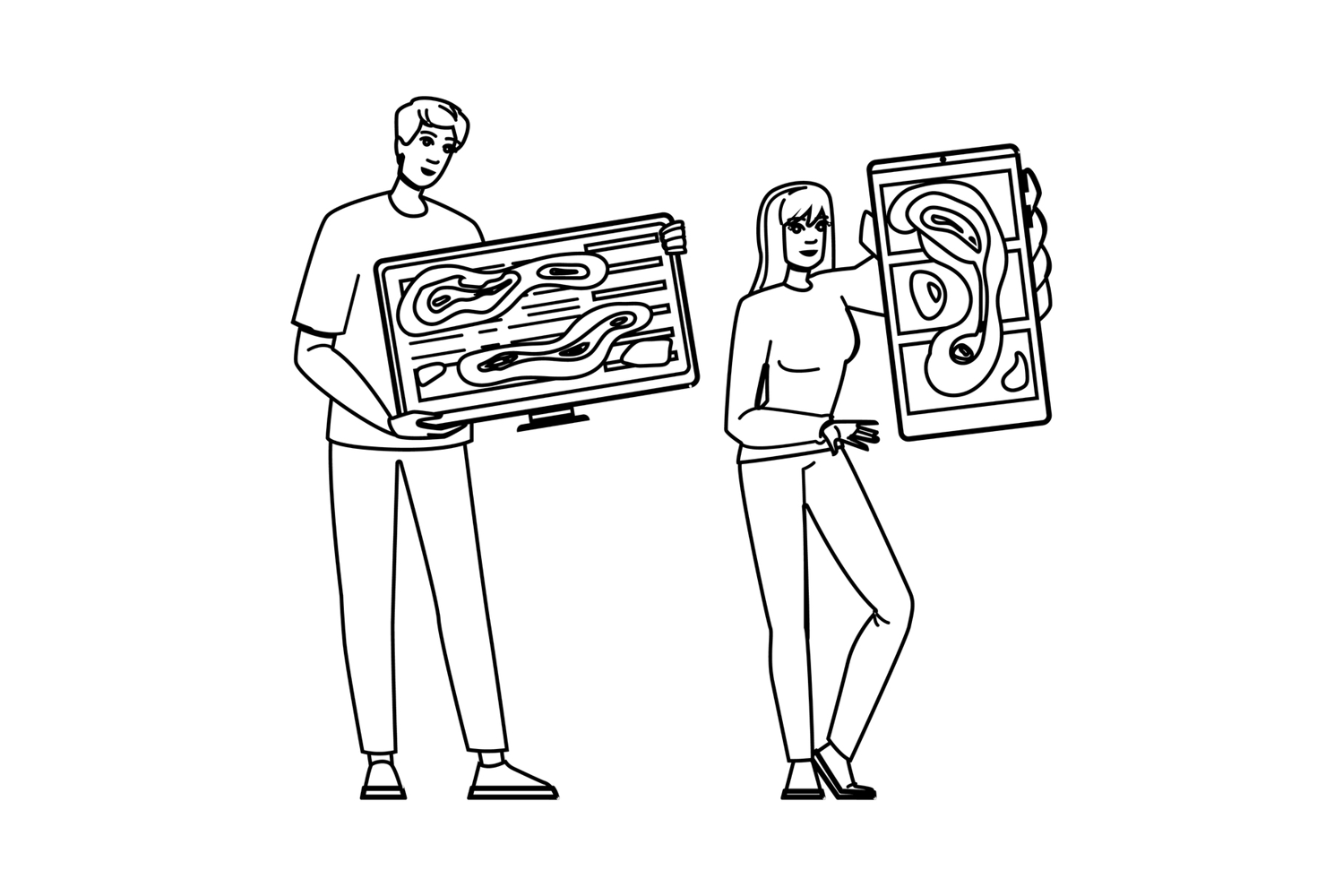data heatmap website vector. analysis visualization, user interface, behavior trends data heatmap website character. people black line pencil drawing illustration
