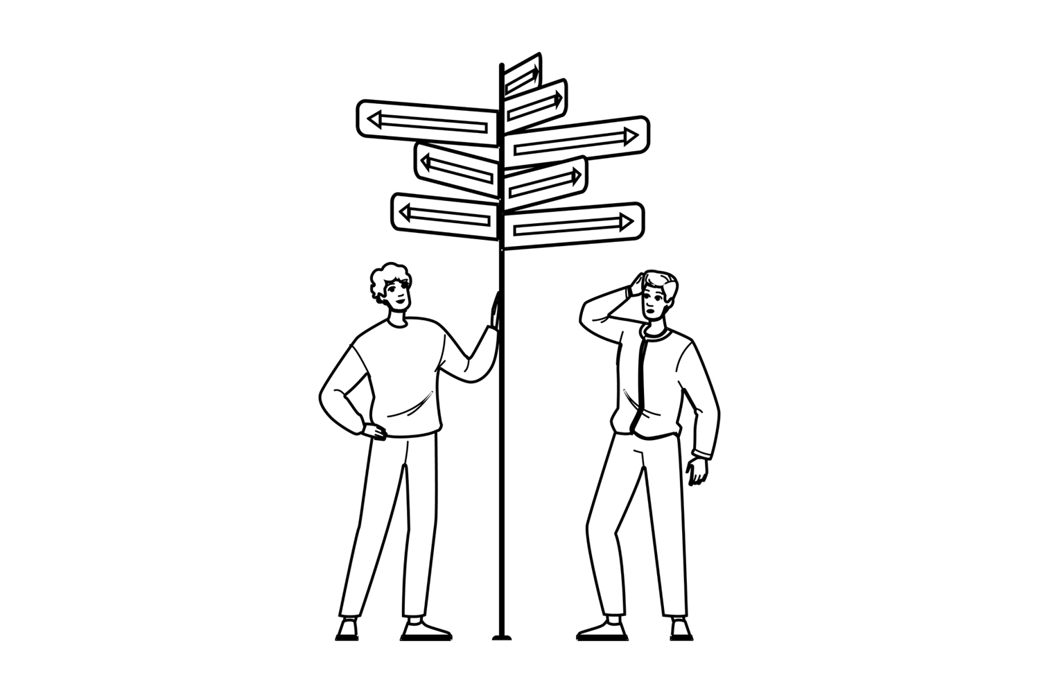 experience hicks law website vector. psychology cognitive, load decision, making navigation experience hicks law website character. people black line pencil drawing illustration