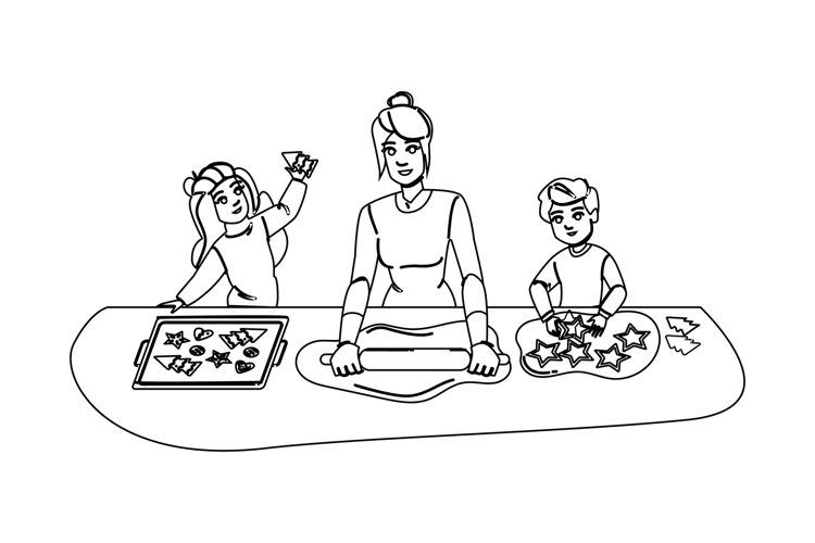 gingerbread holiday holiday cookies vector. sugar shortbread, snickerdoodle biscotti, spritz linzer gingerbread holiday holiday cookies character. people black line pencil drawing illustration