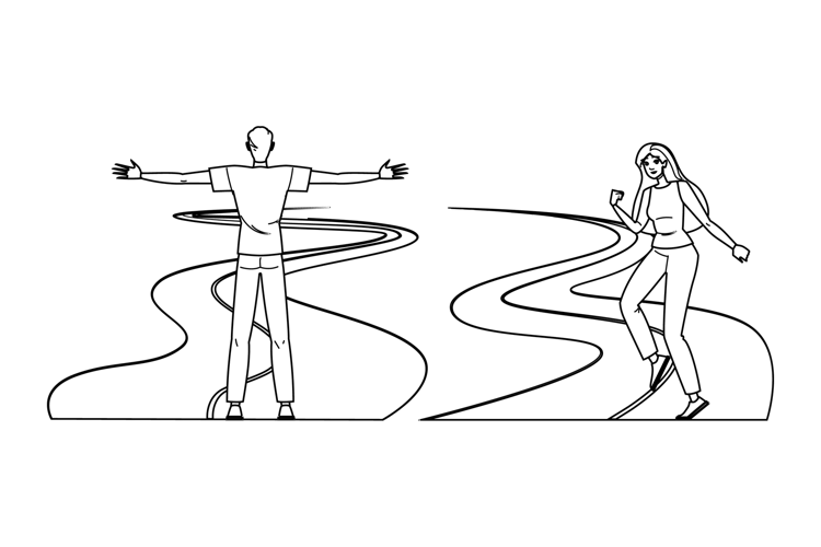 journey open road freedom vector. exploration wanderlust, escape liberation, serenity solitude journey open road freedom character. people black line pencil drawing illustration