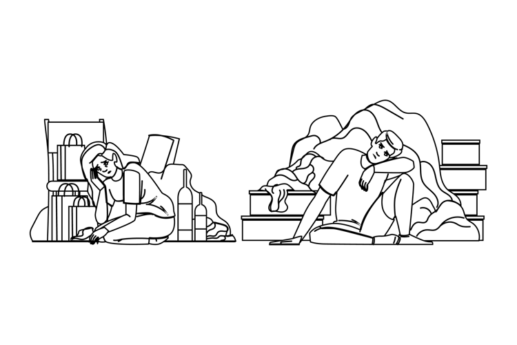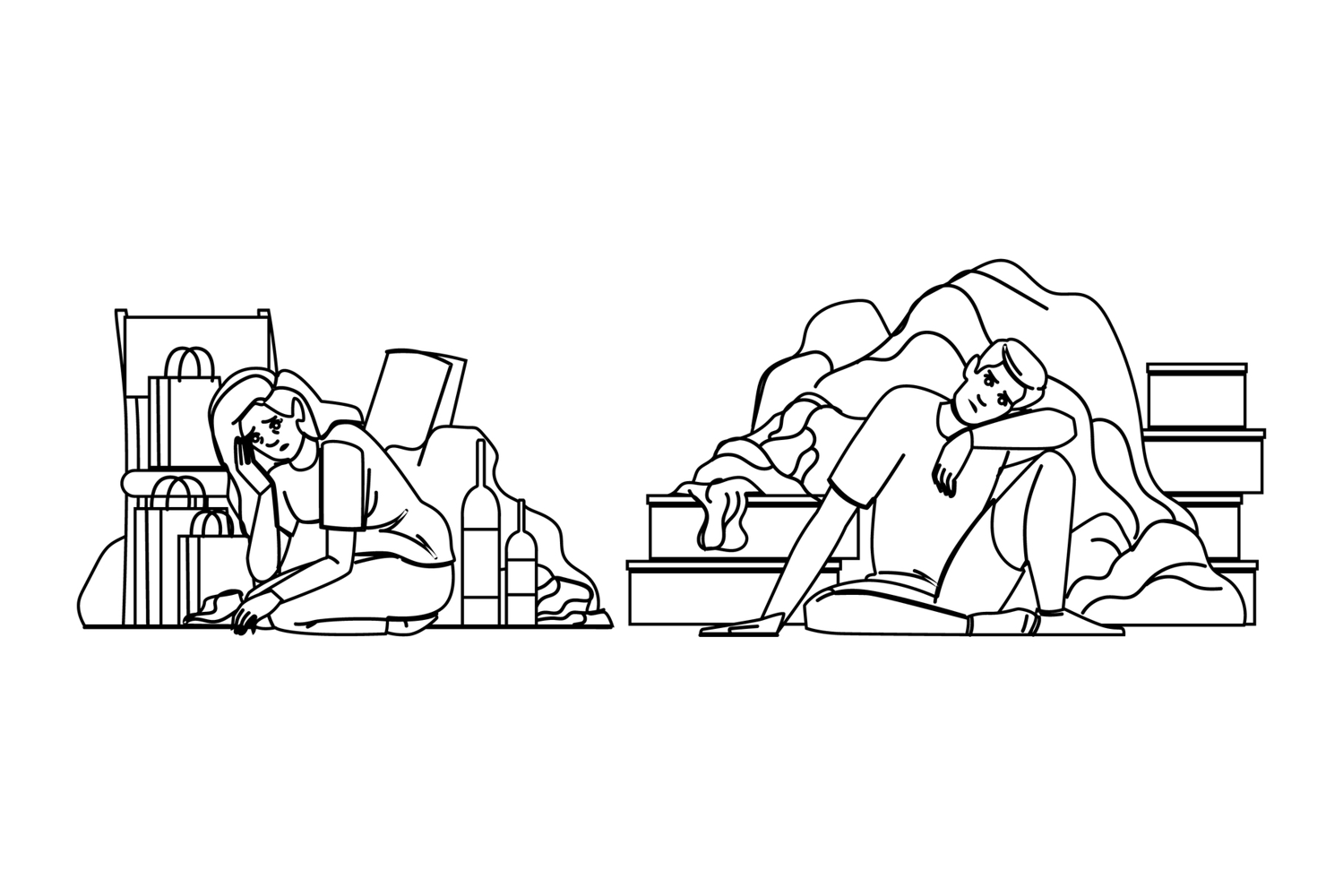 anxiety stress at home vector. tension overwhelm, pressure conflict, burnout exhaustion anxiety stress at home character. people black line pencil drawing illustration