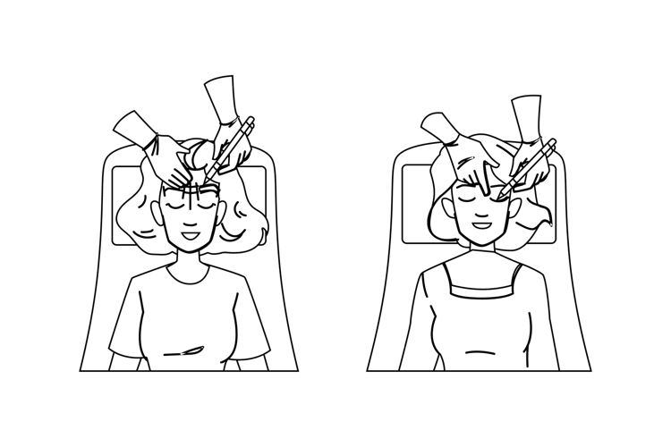 eye tattoo eyelashes eyebrow vector. permanent face, beautiful eyelash, care cosmetology eye tattoo eyelashes eyebrow character. people black line pencil drawing illustration