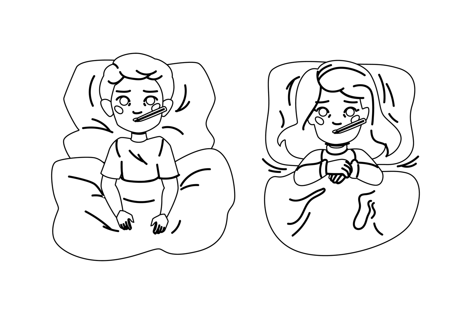 doctor temperature kid vector. home flu, care medical, hospital boy doctor temperature kid character. people black line pencil drawing illustration