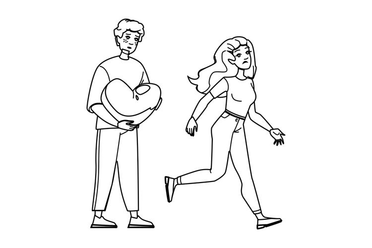 sad unrequited love teen vector. woman student, female romantic, person college sad unrequited love teen character. people black line pencil drawing illustration