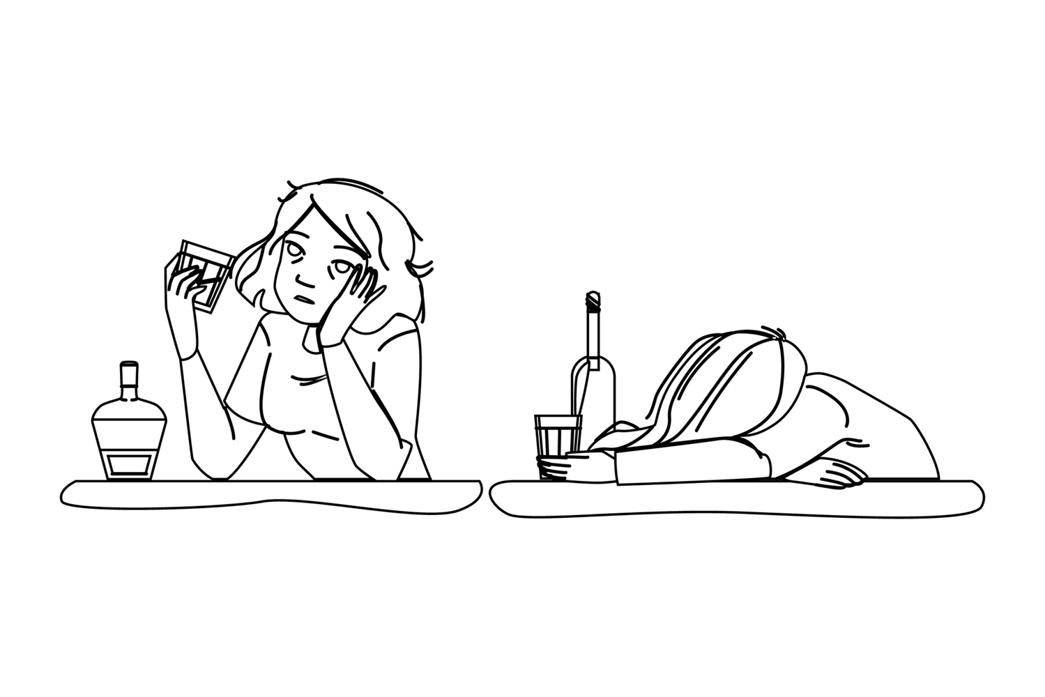 drink woman alcohol vector. beverage female, booze glass, addict liquor drink woman alcohol character. people black line pencil drawing illustration
