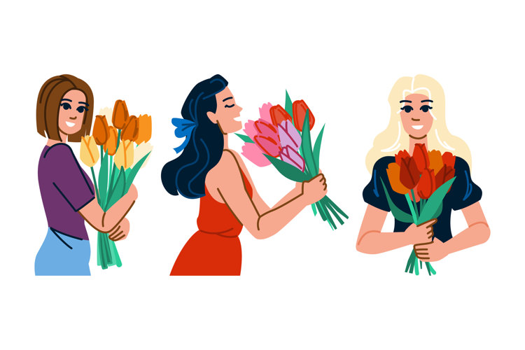 Illustration Character Cartoon Flat Vector Feminine Beauty Woman People Tulip