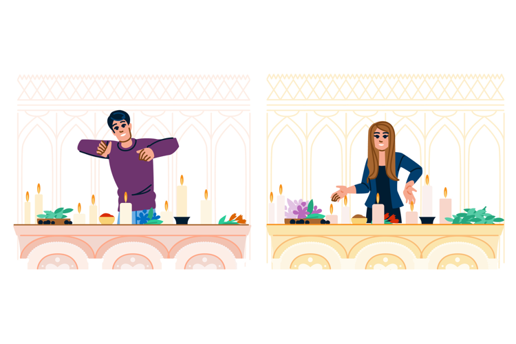 Illustration Character Cartoon Flat Vector Magic People Witchcraft Ritual Altar