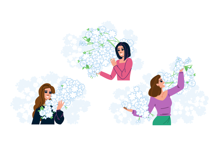 Illustration Character Cartoon Flat Vector Tree Woman People Growth Blossoming