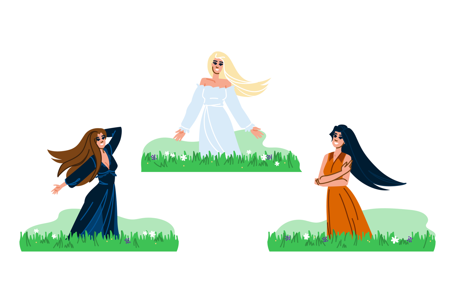 Illustration Breeze Cartoon Flat Vector Woman Hair People Field Blowing