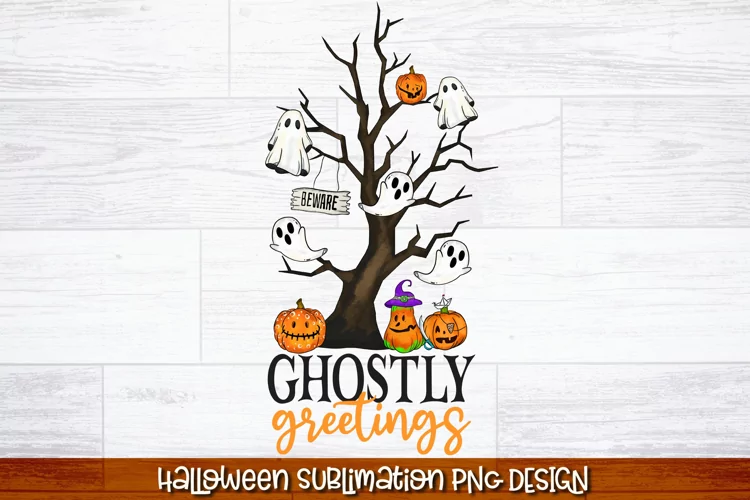 Ghostly Greetings PNG | Halloween Sublimation Design
