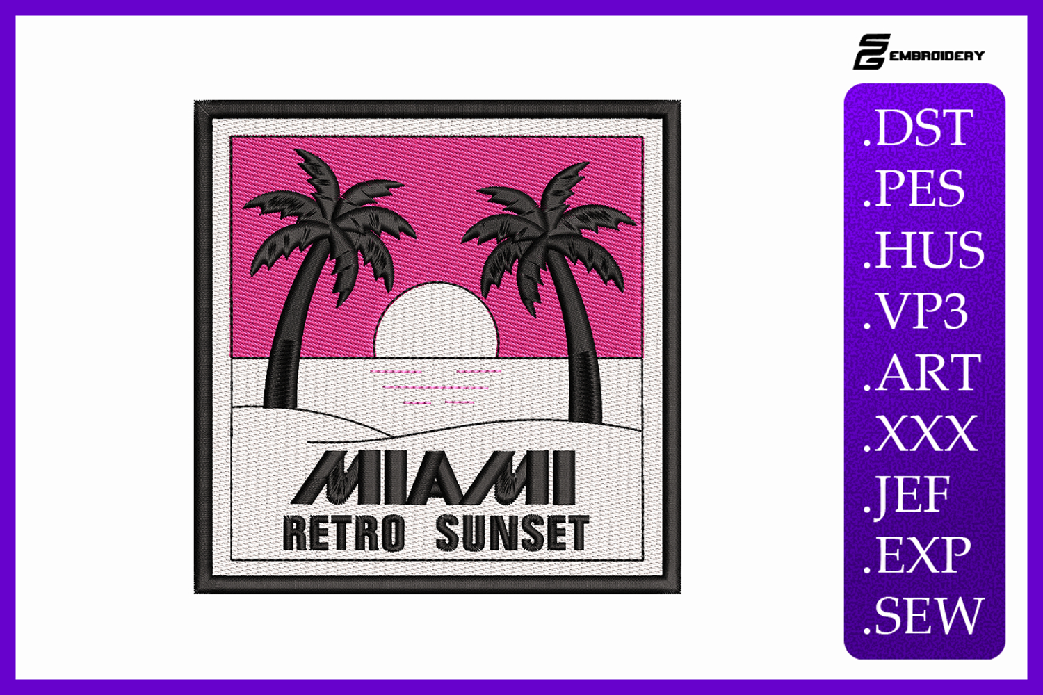 Miami Retro Sunset Embroidery Design