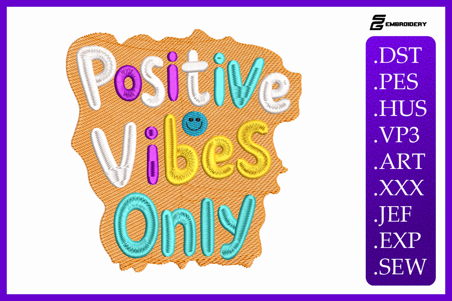 Smiley Quote Positive Vibes Only Embroidery Design example image 1