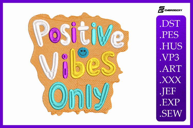 Add a fun and uplifting touch to your projects with this Positive Vibes Only Embroidery Design! Featuring colorful typography with playful elements, this design is perfect for a variety of creative uses.