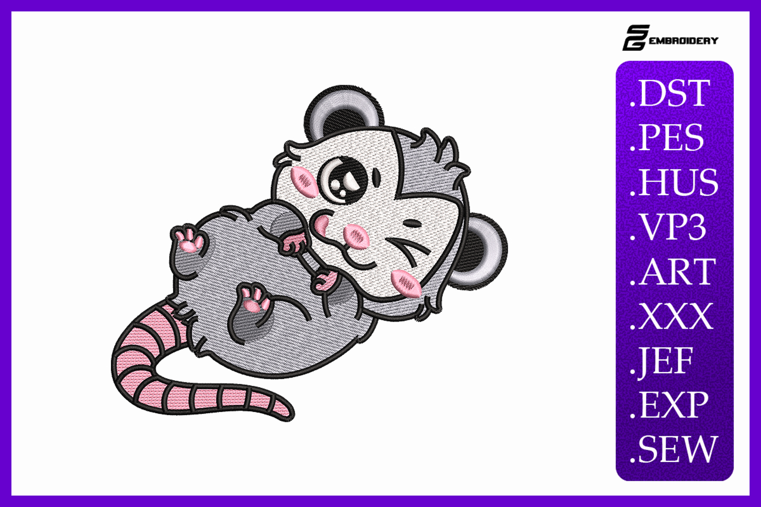 Cute Opossum Baby Animal Embroidery Design example image 1