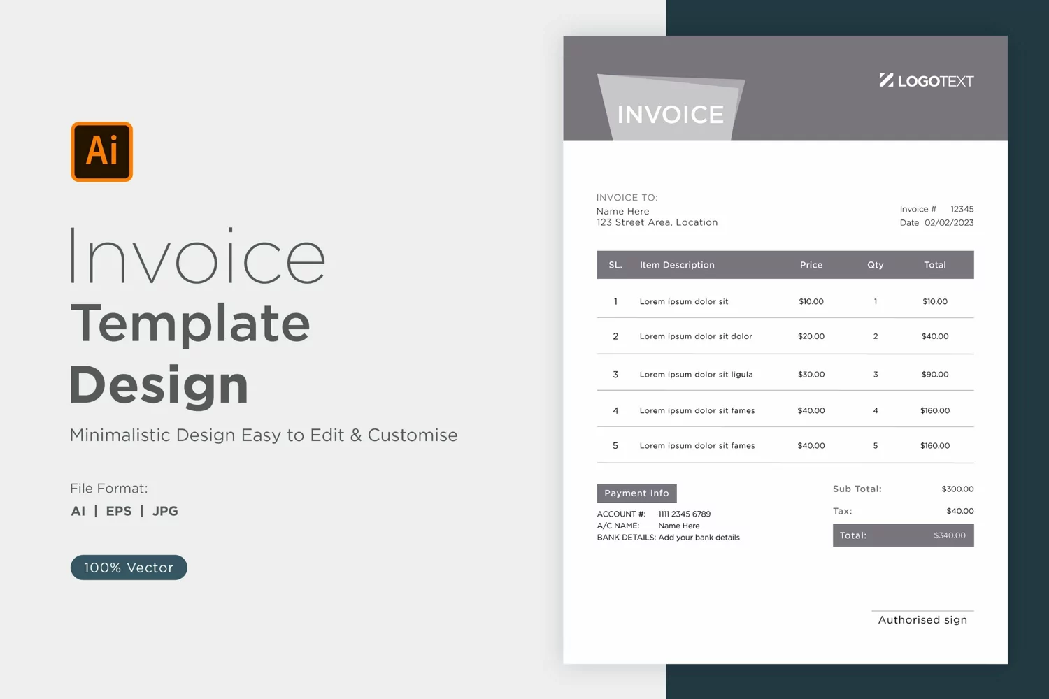 Corporate Invoice Template. Use this Invoice for corporate or company billing purposes. This Simple Invoice will help you to create your invoice very quickly and easily. Elegant Invoice Design will convey your brand identity as well as Professional Invoice look. This Invoice Template is professionally organized and labeled so every beginner can edit it like a pro.