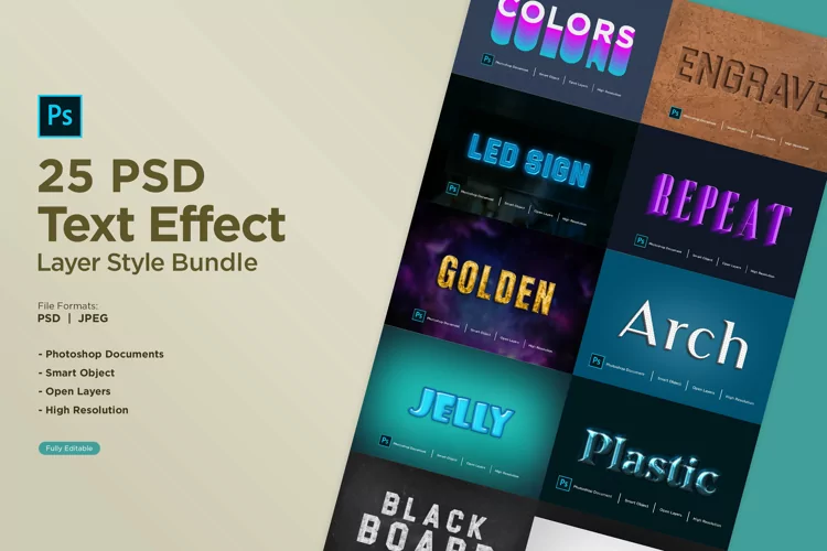 Discover a diverse collection of Adobe Photoshop PSD Text Effects, offering fully customizable layer styles that can be effortlessly edited to suit your needs. Whether you're designing graphics for print or digital media, these PSD files allow you to adjust size, color, and style with just a few simple steps. Each effect is meticulously crafted to enhance your creative projects and elevate your designs.