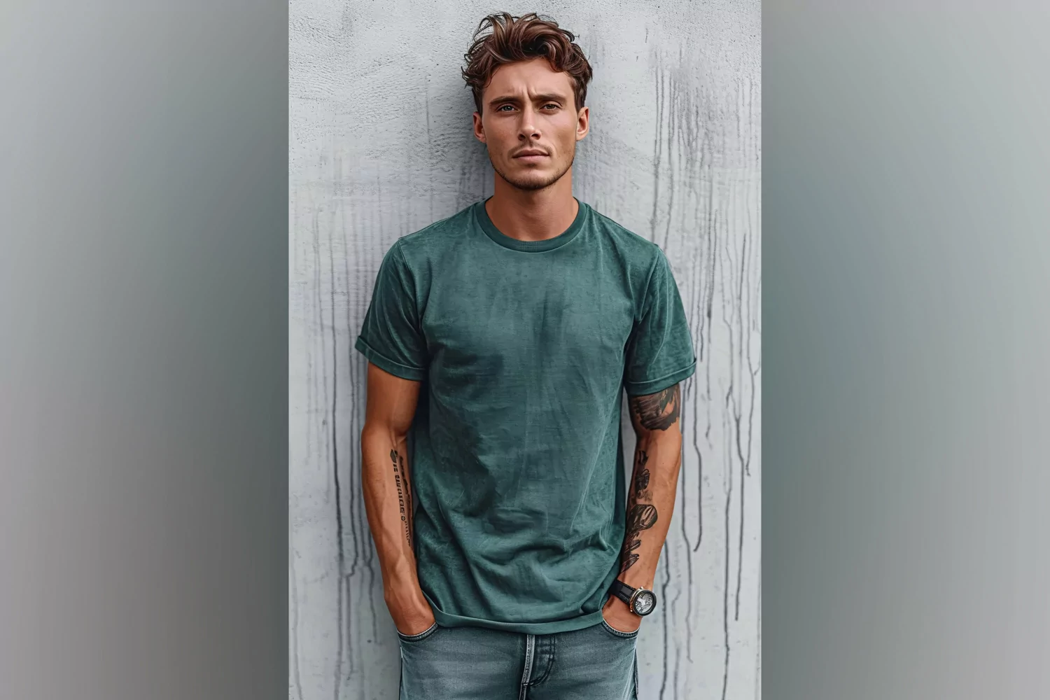 Presents a cutting-edge T-shirt Flat Lay Mockup, capturing the essence of male and female fashion in stunning detail. Tailored for logo mockup, company branding, and printing, this Ai-generated digital art effortlessly transforms T-shirt presentation into a dynamic and visually striking experience, setting a new standard for digital apparel representation.