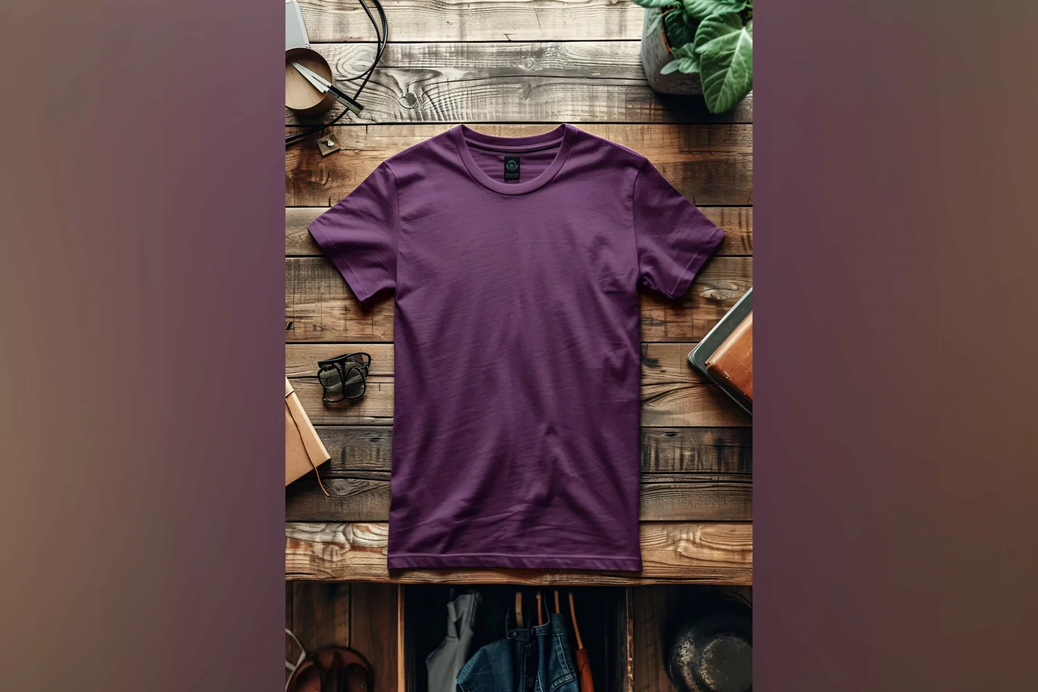 Presents a cutting-edge T-shirt Flat Lay Mockup, capturing the essence of male and female fashion in stunning detail. Tailored for logo mockup, company branding, and printing, this Ai-generated digital art effortlessly transforms T-shirt presentation into a dynamic and visually striking experience, setting a new standard for digital apparel representation.