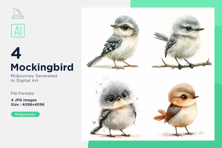 Similar Design Products to Cute Mocking Bird Baby Watercolor illustration Set 4