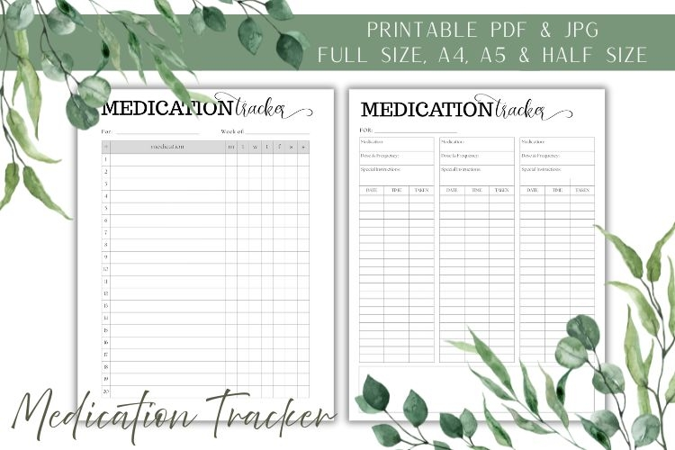 Medication Tracker Printable 2 Versions PDF & JPG | 4 Sizes