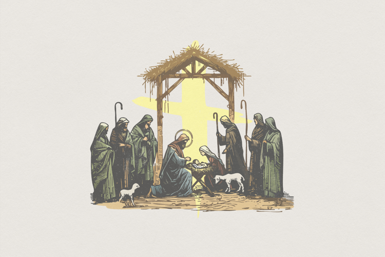 Nativity Scene PNG, Holy Family Digital Art, Christmas Religious Shirt, Shepherds and Manger, Christian PNG Clipart, Printable Jesus Scene