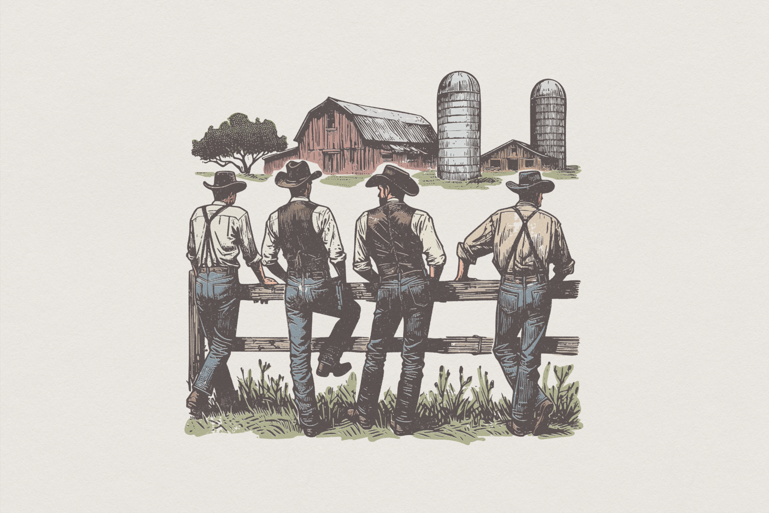 Farm Life PNG, Vintage Country Scene Digital Download, Barn and Silo Art, Rural Landscape Design for Shirts, Rustic Printable Shirt PNG