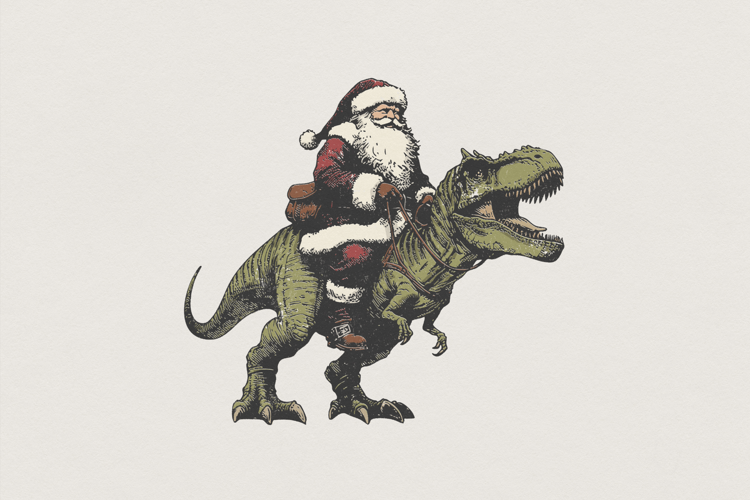 Santa Riding Dinosaur PNG, Christmas T Rex PNG Digital
