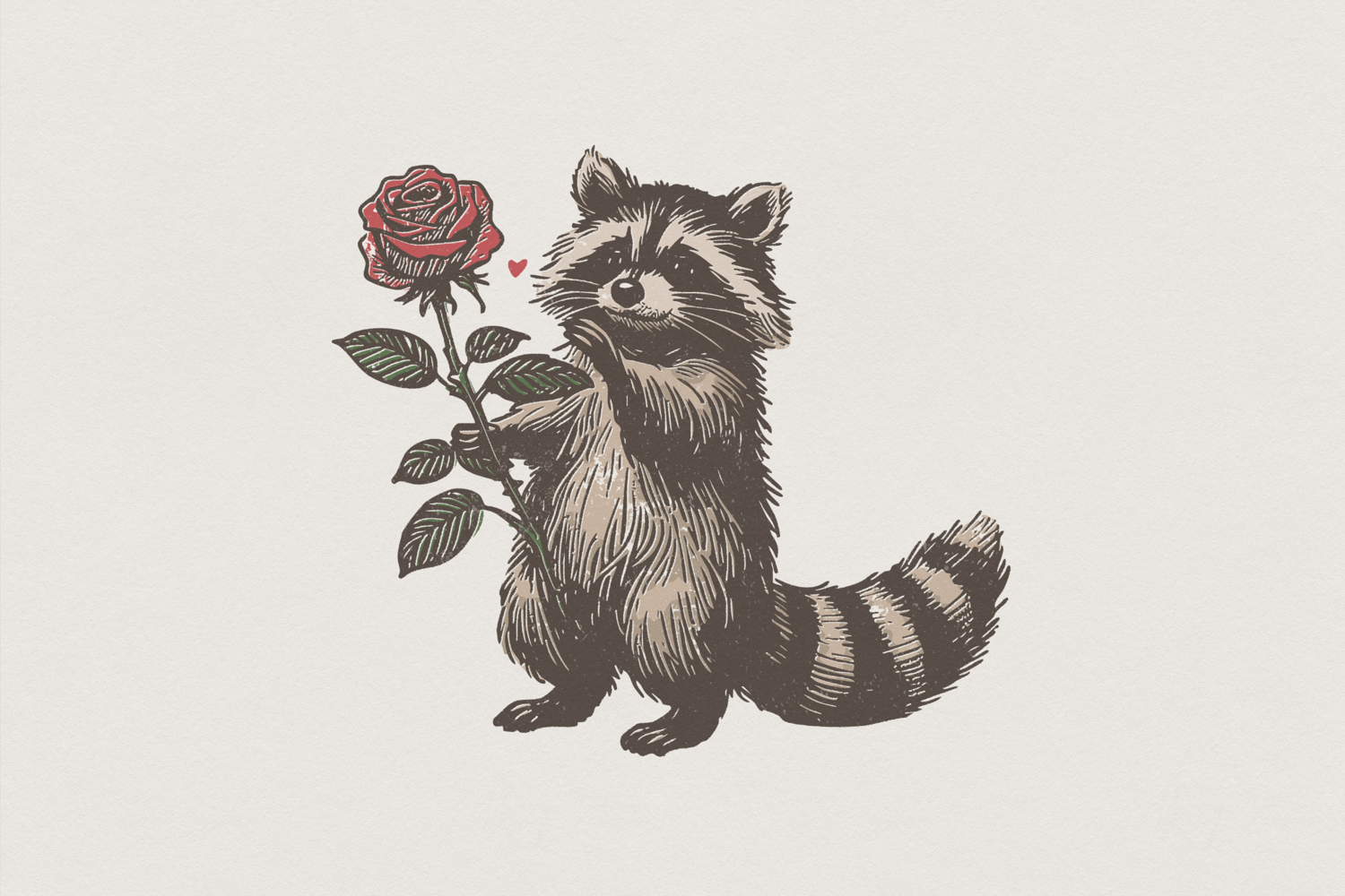 Raccoon With Rose PNG, Cute Animal Valentine Shirt, Romantic Forest Creature Digital Art, Printable Wildlife Design, Gift PNG