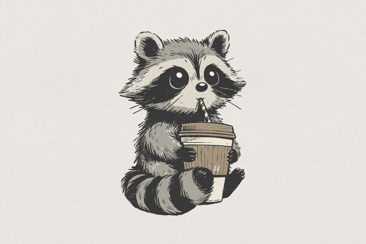 Similar Design Products to Cute Raccoon PNG Holding Coffee Cup, Digital Download