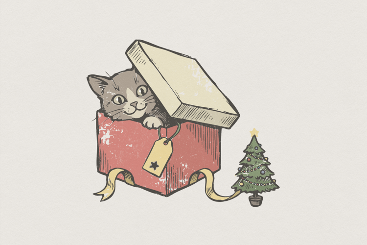 Similar Design Products to Cat In Gift Box PNG, Christmas Tree Art, Cute Holiday Cat,