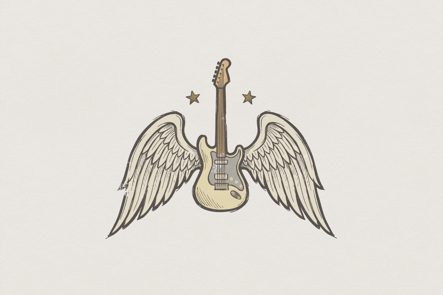 Guitar With Wings PNG, Angelic Music Clipart, Vintage Rock example image 1