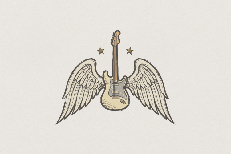 Guitar With Wings PNG, Angelic Music Clipart, Vintage Rock Art Print, Star Guitar Illustration, Musical Shirt Design, PNG Download
