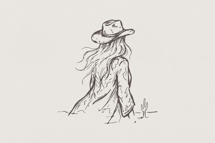Cowgirl PNG, Western Woman Line Art, Desert Printable