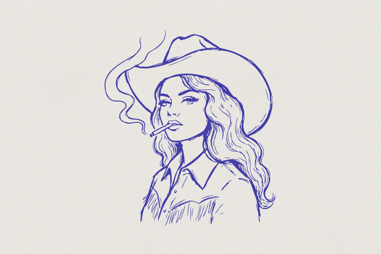 Digital Download Cowboy Hat Country Girl Woman Illustration Western Png Western Art Line Art Png Vintage Cowgirl Retro Western Smoking Cowgirl