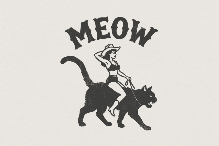 Similar Design Products to Meow PNG, Vintage Cowgirl On Cat PNG, Retro Western Graphic