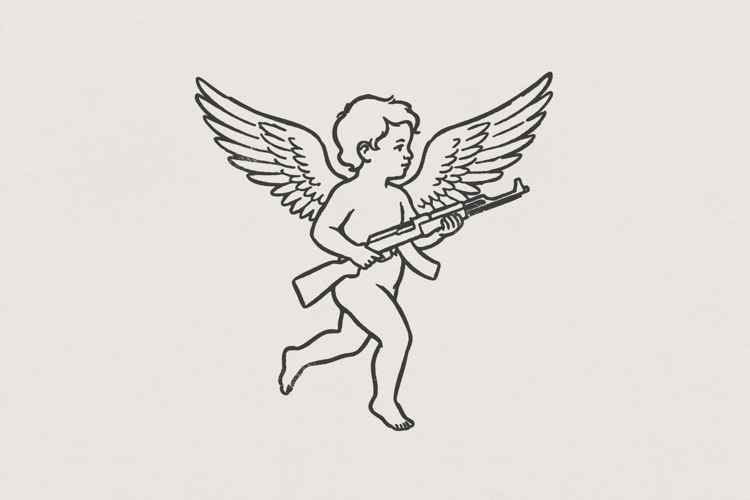 Angel With Gun PNG, Cherub Clipart Printable, Edgy Art, Tattoo Style PNG, Cupid Outline, Unique Aesthetic T-Shirt Design, Digital Download