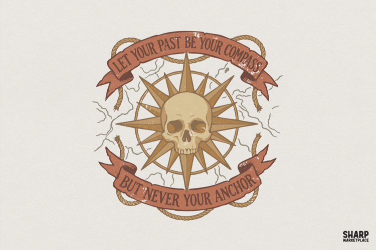 Let Your Past Be Your Compass PNG, Skull Nautical Design, Motivational Quote Shirt, Rustic Tattoo Art, Vintage Compass PNG, Digital Download