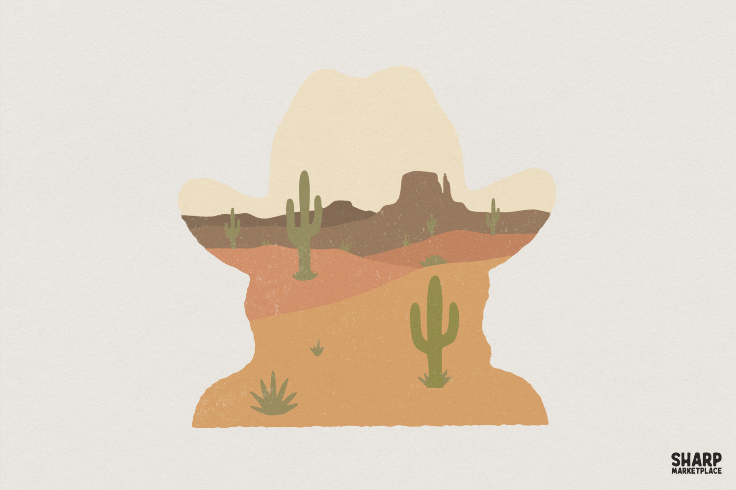 Western Desert PNG, Cowboy Hat Art, Cactus Landscape example image 1