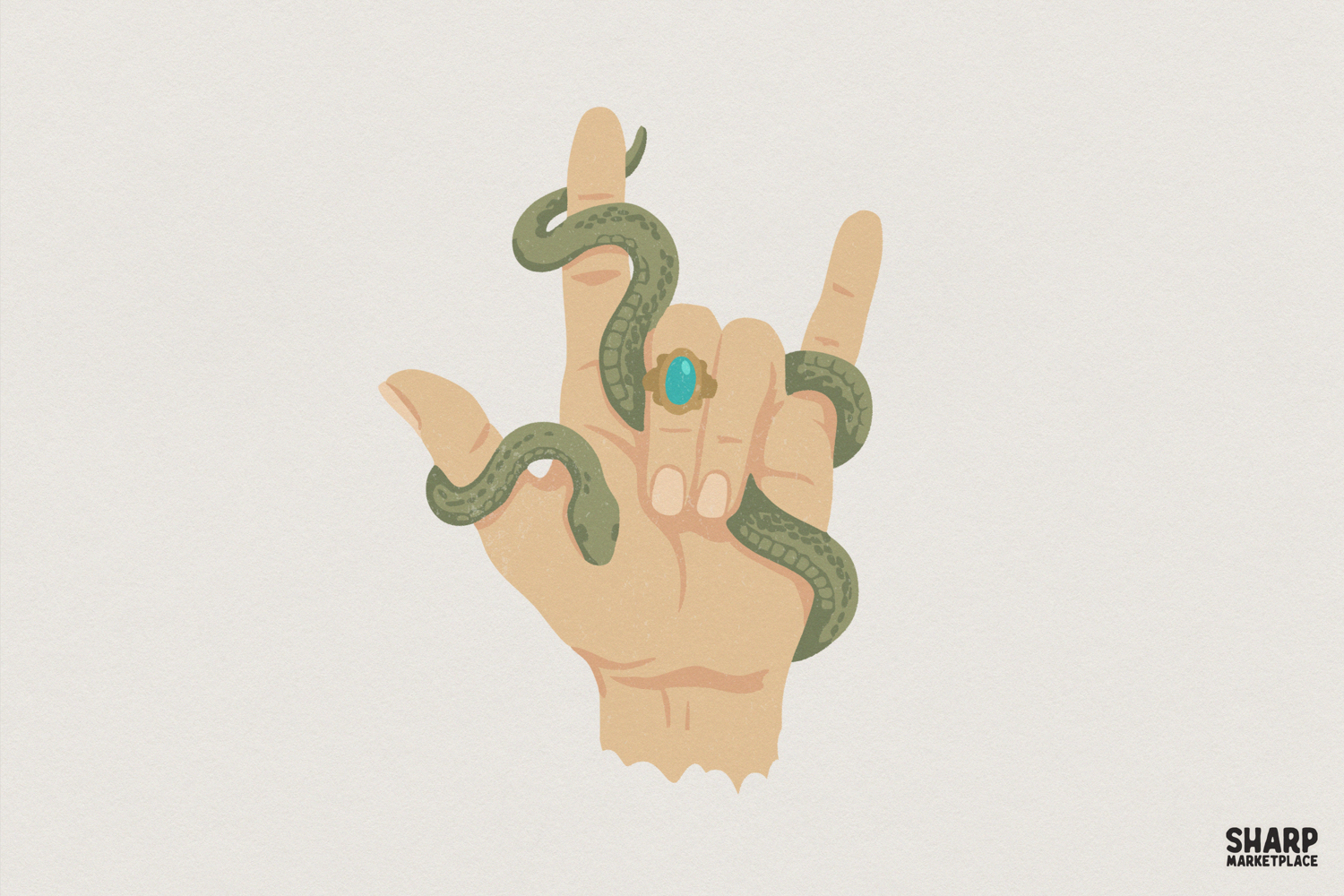 Snake Hand PNG, Boho Occult Sign, Mystical Rock On Symbol, Unique Printable Art, Green Snake Jewelry Design, Digital Download PNG