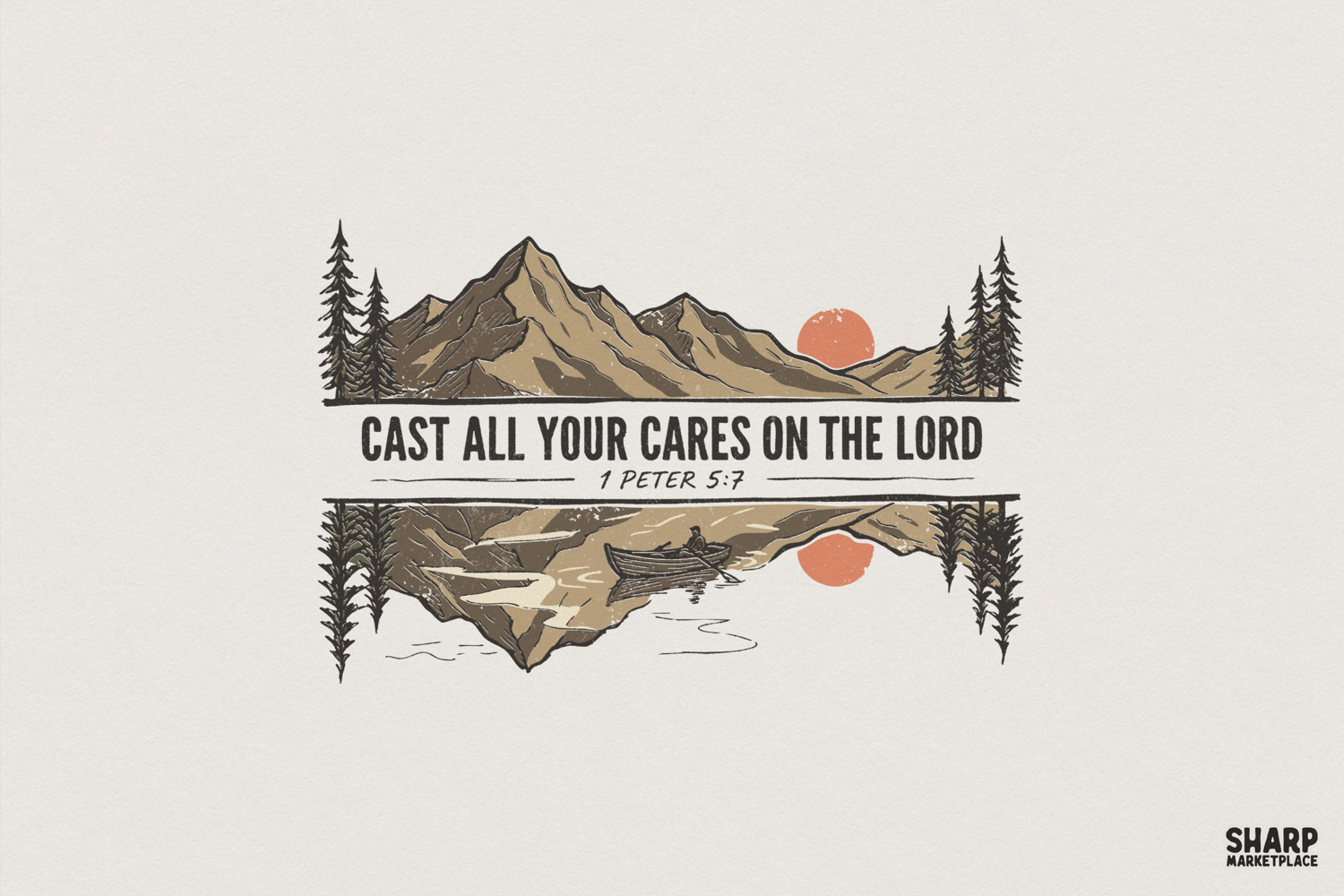 Cast All Your Cares On The Lord PNG, 1 Peter 5:7, Christian Shirt Design, Bible Verse PNG, Mountain Nature Scene, Inspirational Gift