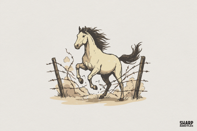 Wild Horse PNG, Running Mustang Clipart, Western Animal Shirt, Vintage Barbed Wire Printable, Rustic Equine PNG for Instant Download