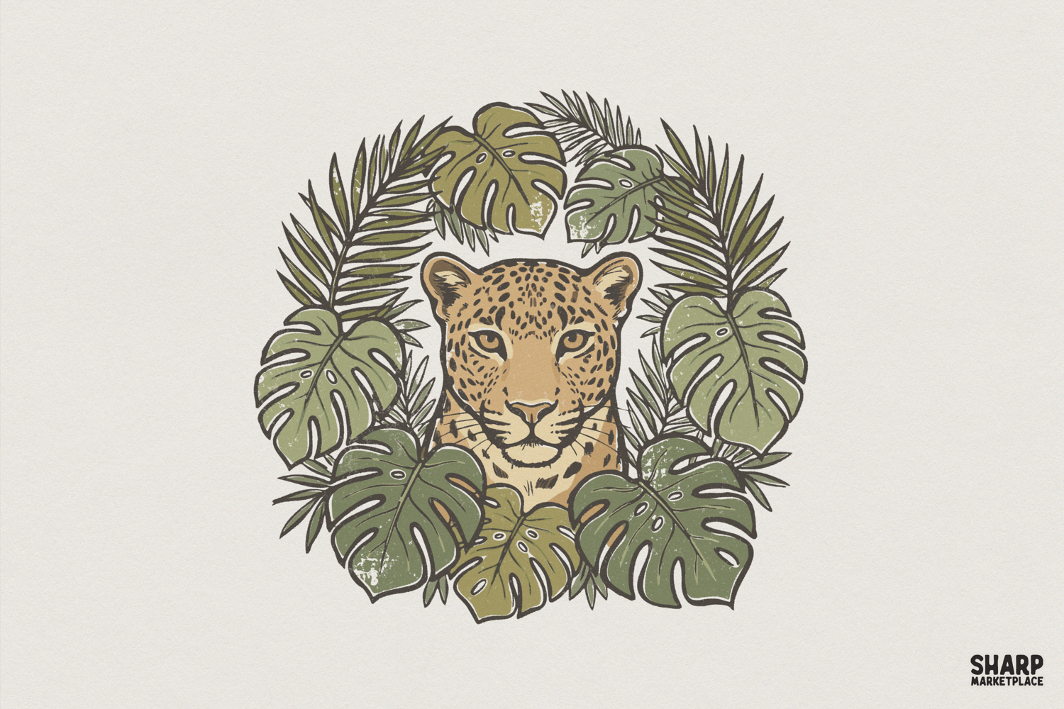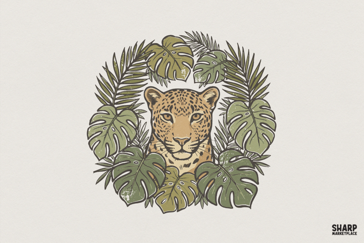 Leopard Jungle PNG, Tropical Animal Clipart, Wild Cat Printable Art, Boho Botanical Shirt Design, Digital PNG for Nature Lovers