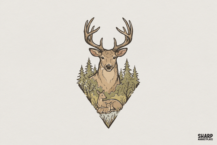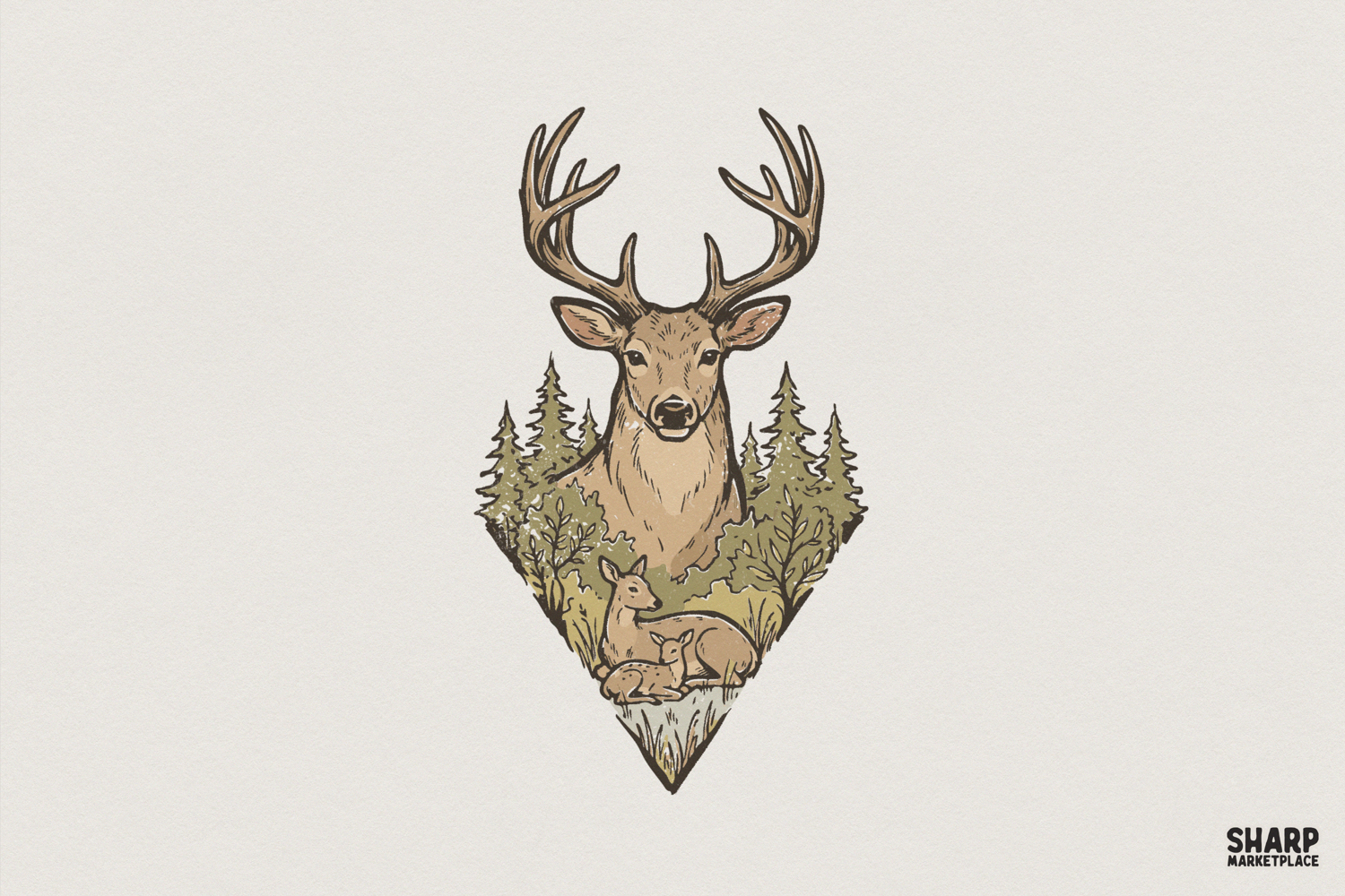 Similar Design Products to Deer PNG, Woodland Animal Design, Nature Forest Tee Digital